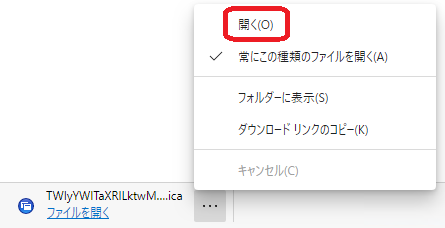 もう一度、「・・・」の部分をクリックし、「開く」をクリックします(赤枠部分)。